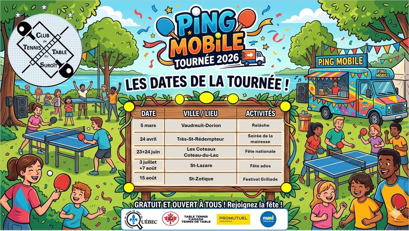 L'objectif est de rendre le tennis de table accessible à tous, en particulier aux personnes qui n'ont pas l'occasion de le pratiquer régulièrement, ni de se déplacer. La caravane, aménagée en véritable espace de jeu, se déplacera dans différents quartiers, parcs et événements locaux, offrant des séances d'initiation gratuites, des ateliers, des tournois amicaux, des jeux, des défis et des démonstrations.